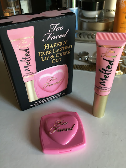 Infelizmente, esse conjunto não chegou a Portugal mas na zona de caixa da Sephora reparei numa das caixinhas que fazem parte desse kit, este Happily Ever Lasting Lip & Cheek Duo (ufff!).
